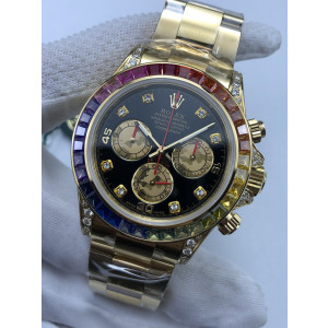 (준비완료/특급배송/예상수령5일)NO.77/JH공장 롤렉스 데이토나 옐로우골드 레인보우 바게티베젤 블랙다이얼