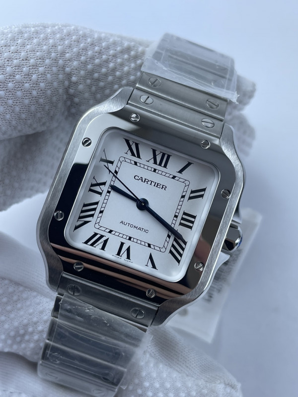 (준비완료/특급배송)NO.1384/V6공장 까르띠에 산토스 2018 미디움 스틸 화이트다이얼 스마트 링크 브슬