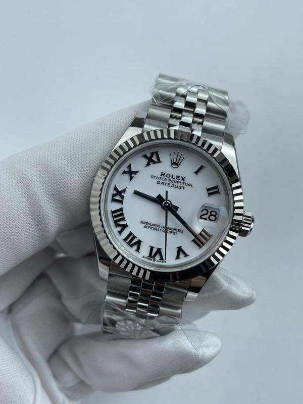 • (준비완료/특급배송)NO.3605/롤렉스 데이저스트 31mm 여성용 시계 화이트 로만다이얼 플루티드 베젤 쥬빌레 밴드 (QP공장)