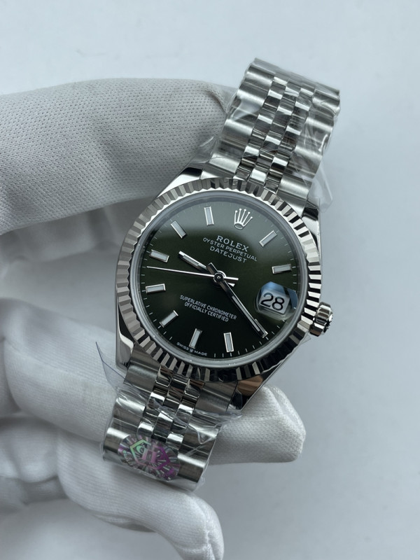 (준비완료/특급배송)NO.3656/QP공장 롤렉스 데이저스트 31mm 여성용 시계 그린 바인덱스 다이얼 플루티드 베젤 쥬빌레 밴드